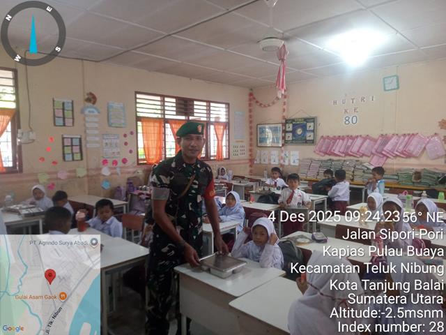 Guna penyiapan Siswa-siswi untuk memberikan Pengetahuan Wawasan Kebangsaan tentang memupuk rasa cinta tanah air dan menjalankan kedisiplinan di sekolah, dalam kesempatan ini seperti halnya yang dilakukan oleh Personel Bintara Pembina Desa (Babinsa) Koramil 08/Pulau Buaya jajaran Kodim 0208/Asahan Sertu Faisal Lubis turun kewilayah binaan untuk melaksanakan kegiatan Wasbang kepada Murid Sekolah Dasar, dengan memberikan pengarahan kepada siswa/i tentang wawasan kebangsaan dan cinta tanah air, kegiatan Wasbang di SD Negri Sipori pori dalam rangka memberikan Arahan kepada Siswa Siswi agar patuh kepada Bapak/ibu guru,kedua orang tua dan memotivasi agar belajar lebih giat, semangat dan tetap selalu menjaga kebersihan Sekolah, bersama dengan Ibu Dewi Spd (Wali kelas), Ibu Ratna SPD (Guru kelas) dan Siswa/Siswi, kegiatan tersebut yang dilaksanakan bertempat di Jalan Sipori pori Kecamatan Teluk Nibung Kota Tanjung Balai, Kamis (04/12/2025).