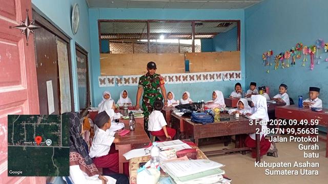 Guna penyiapan Siswa-siswi untuk memberikan Pengetahuan Wawasan Kebangsaan tentang memupuk rasa cinta tanah air dan menjalankan kedisiplinan di sekolah, dalam kesempatan ini seperti halnya yang dilakukan oleh Personel Bintara Pembina Desa (Babinsa) Koramil 18/Meranti jajaran Kodim 0208/Asahan Serma Jalil turun kewilayah binaan untuk melaksanakan kegiatan Wasbang kepada Murid Sekolah Dasar, dengan memberikan pengarahan kepada siswa/i tentang wawasan kebangsaan dan cinta tanah air, dengan melaksanakan Wanmil dengan Siswa Siswi SMP Mis Al Hidayah Suka Damai, bersama dengan Ibu Siti Hairani (Guru) dan siswa Siswi Mis Al Hidayah Suka Damai, kegiatan tersebut yang dilaksanakan bertempat di Jalan Protokol Gurach Batu Desa Suka Damai Kecamatan Pulo Bandring Kabupaten Asahan, Selasa (03/02/2026).