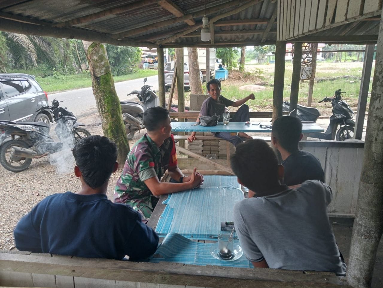 Dalam menjalin komunikasi antara aparat Komando kewilayahan dengan masyarakat bisa dilakukan di mana saja.Seperti halnya Babinsa Koramil 08/KM Kodim 0302/Inhu Praka Inel dengan melaksanakan Komunikasi Sosial (Komsos) bersama warga binaan di Kedai kopi Pak Darman di desa Pulau mungkur kecamatan gunung Toar kabupaten Kuantan Singingi. Rabu ( 05/11/2025 ).