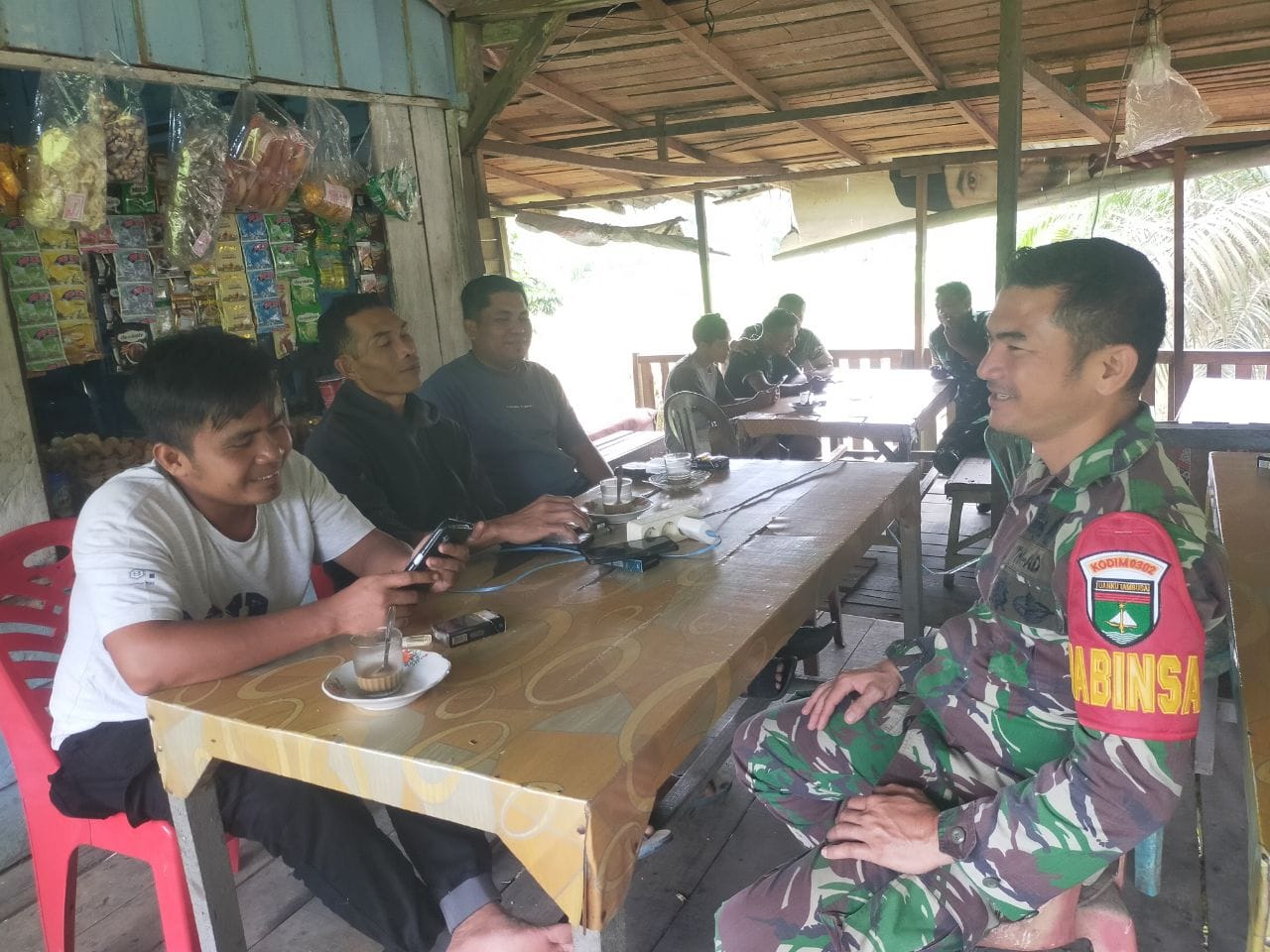 Dalam menjalin komunikasi antara aparat Komando kewilayahan dengan masyarakat bisa dilakukan di mana saja.Seperti halnya Babinsa Koramil 08/KM Kodim 0302/Inhu Sertu Hendro dengan melaksanakan Komunikasi Sosial (Komsos) bersama warga binaan di Kedai kopi Pak Ridwan di desa Koto Lubuk jambi kecamatan kuantan mudik kabupaten Kuantan Singingi. Rabu ( 01/04/2026 ).