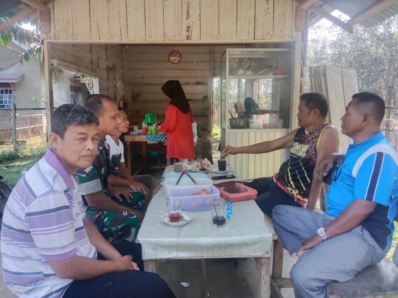 Teluk Kuantan – Babinsa Koramil 02/Kuantan Tengah Kodim 0302/Inhu Serda Egiprianto melaksanakan kegiatan Komunikasi Sosial (Komsos) dengan warga binaannya bertempat di salah satu warung kopi yang berada di Gunung Kesiangan Kec. Benai Kab. Kuansing, Minggu (05/10/2025).