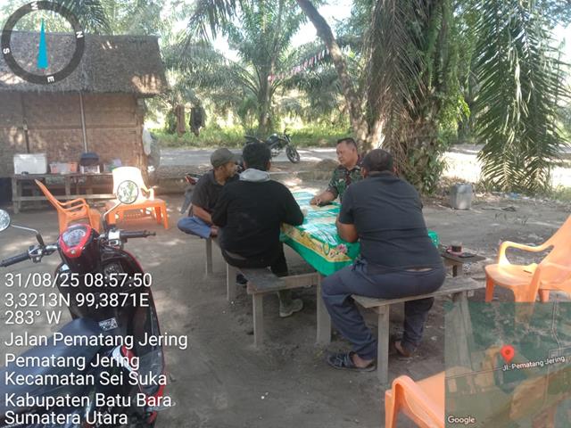 Batu Bara | Dalam rangka untuk menjalin silaturahmi yang baik dengan warga desa binaan serta menjaga keamanan diwilayah, dalam kesempatan ini seperti yang dilakukan oleh Personel Bintara Pembina Desa (Babinsa) Koramil 02/Air Putih jajaran Kodim 0208/Asahan Sertu Fahmi turun kewilayah binaan untuk melaksanakan kegiatan Komunikasi Sosial (Komsos) bersama dengan warga Masyarakat binaan dalam rangka membahas tentang keamanan lingkungan desa dengan menggalakan kembali Pos Kamling, kegiatan Komsos dengan warga menghimbau masyarakat untuk selalu menjaga kerukunan hidup antar umat beragama.sehingga terciptanya hubungan yang harmonis sesama umat beragama, bersama dengan Bapak Holik, Bapak Ridwan dan Bapak Basar, kegiatan tersebut yang dilaksanakan bertempat di Dusun 4 Desa Pematang Jering Kecamatan Se’i Suka Kabupaten Batu Bara, Minggu (31/08/2025).