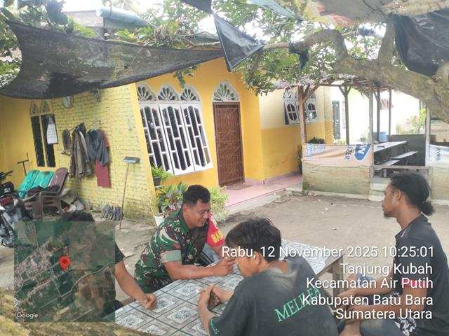 Batu Bara  |  Kegiatan Komsos bersama warga ini rutin dilakukan para Babinsa diwilayah desa binaan dan kegiatan ini sudah menjadi tugas pokok para Babinsa sebagai Babinsa diwilayah binaan, himbauan yang disampaikan para Babinsa kepada warga merupakan bentuk kepedulian kita terhadap kebersihan lingkungan dan Kamtibmas di wilayah binaan, inilah yang dilakukan untuk mewujudkan hal tersebut yakni seperti yang dilakukan oleh Personel Babinsa Koramil 02/Air Putih jajaran Kodim 0208/Asahan Kopda M Hamka turun kewilayah binaan untuk melaksanakan kegiatan Komunikasi Sosial (Komsos) bersama dengan warga masyarakat desa binaan dalam rangka untuk membahas tentang Keamanan dan kebersihan lingkungan, kegiatan Komsos Dengan masyarakat Membahas tentang pentingnya menjaga Keamanan dan menjauhi narkoba, bersama dengan Bapak Sukri (Warga Jln Perdamaian Desa Tanjung mulia), Bapak Lamhot Sitanggang (Warga Jln Perdamaian Desa Tanjung mulia), Bapak samsul (Warga Jln Perdamian Desa Tanjung mulia) dan Bapak Manik (Warga Jln Perdamaian Desa Tanjung mulia), kegiatan tersebut yang dilaksanakan beralamat di warung Bapak Parmin Desa Tanjung Mulia Kecamatan Air Putih Kabupaten Batu Bara, Rabu (12/11/2025).