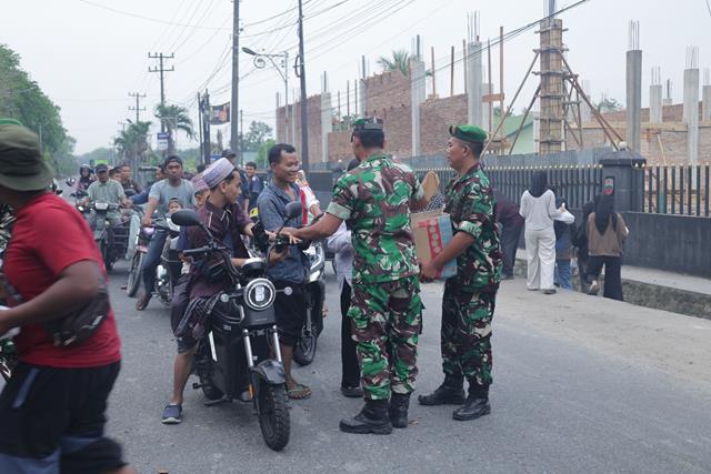 Dengan penuh semangat dan keikhlasan, para prajurit turun langsung ke jalan membagikan paket ta’jil kepada masyarakat yang melintas. Kehadiran para prajurit pun disambut antusias oleh warga yang merasa terbantu dengan adanya pembagian ta’jil tersebut.