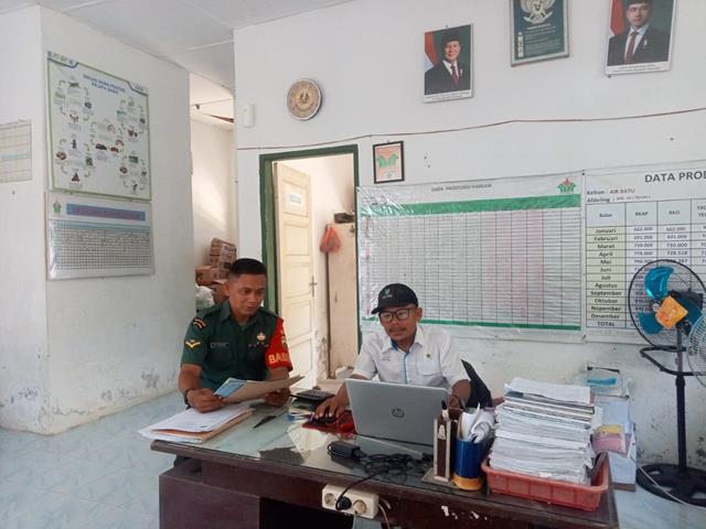 Asahan  |  Dalam rangka meningkatkan sinergitas dan memperbaharui data kewilayahan di desa wilayah binaanya, dalam kesempatan ini seperti yang dilakukan oleh Personel Bintara Pembina Desa (Babinsa) Koramil 13/Buntu Pane jajaran Kodim 0208/Asahan Serda Mas Pujianto turun kewilayah binaan untuk melaksanakan kegiatan Komunikasi Sosial (Komsos) dan sekaligus melaksanakan Pul Data Ter bersama dengan Aparat Desa dalam rangka untuk mempermudah memperoleh data terbaru yang diperlukan serta adanya perubahan data, kegiatan mendata Jumlah penduduk di kantor desa Sumber Padi, selain bersilaturahmi kegiatan tentang data kependudukan guna untuk memperbaiki akurasi data kependudukan serta mengantisipasi permasalahan-permasalahan yang berhubungan dengan data kependudukan serta mengajak kepada Aparatur desa agar selalu menjaga kerukunan antar warga dan menjaga kebersihan lingkungan kantor maupun di Rumah-rumah warga Desa Sumber Padi, bersama dengan Sekdes Piasa Ulu Bapak Daulay dan Kaur Umum ibu Wina, kegiatan tersebut yang dilaksanakan bertempat di Kantor Desa Piasa Ulu Kecamatan Tinggi Raja Kabupaten Asahan, Kamis (28/08/2025).