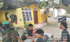 Batu Bara | Kegiatan Komsos adalah salah satu media Babinsa untuk mengenal warganya lebih dekat lagi dan sebagai sarana silaturahmi kepada warga binaannya agar warga menjadi lebih dekat dan akrab dengan Babinsanya. Selain itu kegiatan Komsos ini bertujuan untuk mencari informasi dan mengetahui perkembangan situasi di wilayah Desa binaan. Komunikasi Sosial (Komsos) adalah salah satu media Babinsa untuk mengenal warga binaannya lebih dekat lagi dan sebagai sarana silaturahmi agar lebih dekat dan akrab.