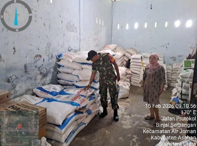 Asahan | Dalam rangka sukseskan Program Ketahanan Pangan Nasional diwilayah Asahan dimana daerah ini adalah wilayah binaan, sehingga Danramil perintahkan para anggotanya khusunya para Babinsanya supaya rutik melaksanakan Pendampinagan Pertanian dan Monitoring pupuk sambil komunikasi social, dalam kesempatan ini seperti yang dilakukan oleh Personel Bintara Pembina Desa (Babinsa) Koramil 07/Air Joman jajaran Kodim 0208/Asahan Serka Fery Rudiyanto turun kewilayah binaan untuk melaksanakan kegiatan Komunikasi Sosial (Komsos) bersama dengan warga masyarakat dan pengusaha Pupuk, dengan melaksanakan pendataan harga pupuk di toko pupuk, dengan melaksanakan pendataan pupuk milik Ibu Sugiati, kegiatan ini juga dapat memperat hubungan silaturahmi antara Babinsa dan masyarakat binaan, kegiatan tersebut yang dilaksanakan bertempat di Dusun 3 Desa Punggulan Kecamatan Air Joman Kabupaten Asahan, Minggu (15/02/2026).