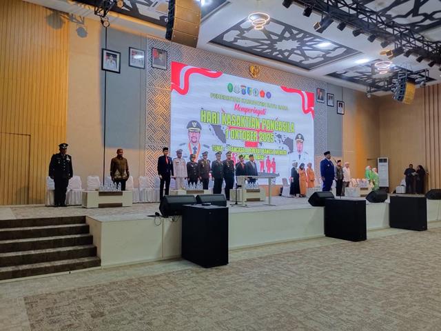 Bupati Batu Bara H. Baharuddin Siagian, SH, M.Si memimpin Upacara Peringatan Hari Kesaktian Pancasila Tahun 2025 di Aula Kantor Bupati Batu Bara, Upacara yang berlangsung dengan khidmat dan lancar tersebut diikuti oleh jajaran pemerintahan daerah, unsur TNI, Polri, serta perwakilan masyarakat. Peringatan tahun ini mengusung tema “Pancasila Perekat Bangsa Menuju Indonesia Raya”. Rangkaian kegiatan upacara meliputi pembacaan Pancasila, pengucapan serta penandatanganan ikrar, dan pembacaan doa bersama. Dengan suasana penuh khidmat, kegiatan tersebut diharapkan semakin memperkokoh nilai-nilai Pancasila sebagai dasar dan pedoman dalam mewujudkan visi Indonesia Emas 2045.