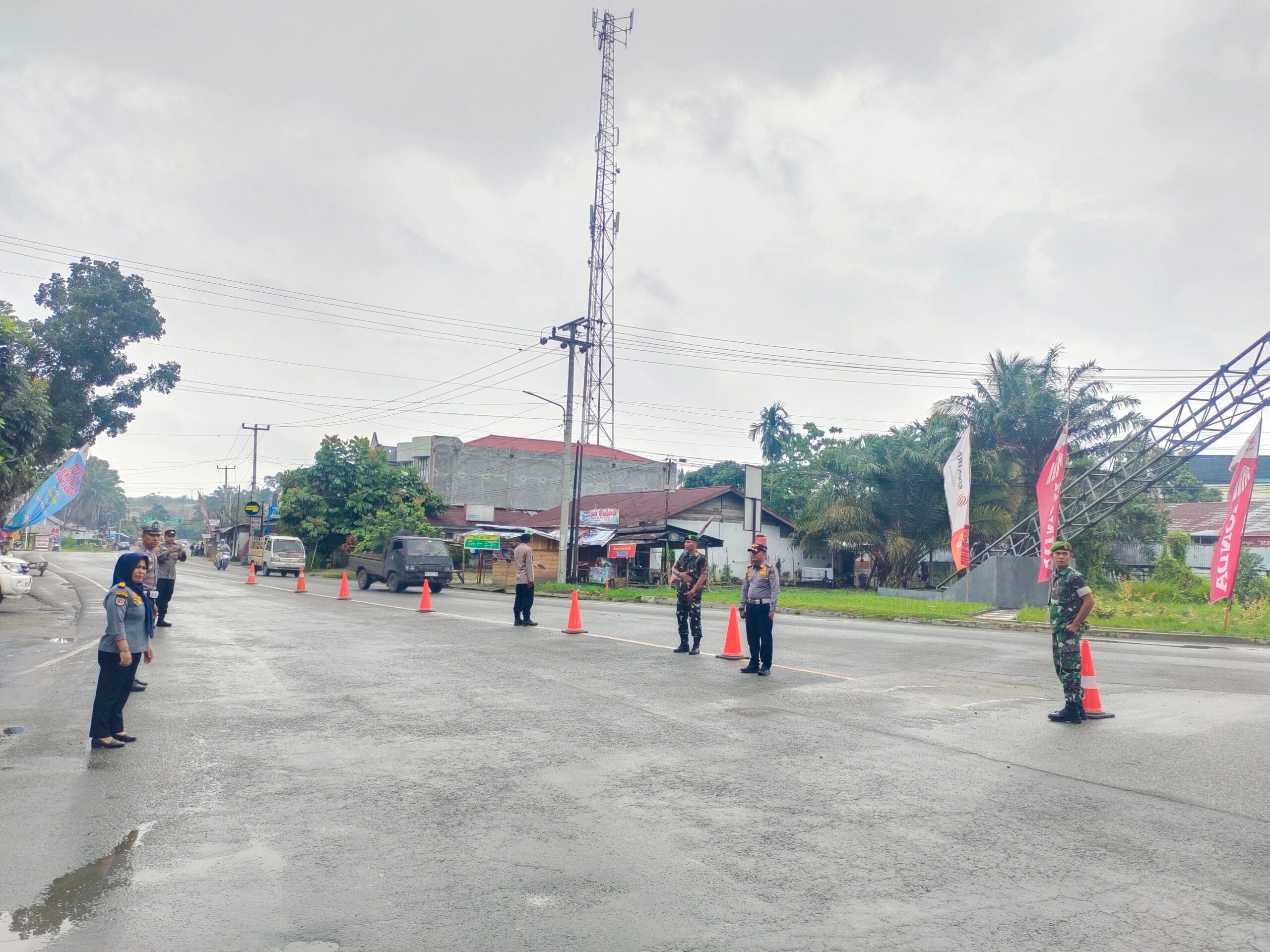 Teluk Kuantan – Babinsa Koramil 02/Kuantan Tengah Koptu Yudi Handrika dan Koptu Indra Eka Putra Melaksanakan PAM Pos Pelayanan dan Monitoring Arus Mudik Lebaran/Hari Raya Idul Fitri 1447H/2026M bertempat di Jalan Lintas Teluk Kuantan – Pekanbaru Tugu Carano Sinambek Kel. Sungai Jering Kec. Kuantan Tengah Kab. Kuansing, Selasa (17/03/2026).