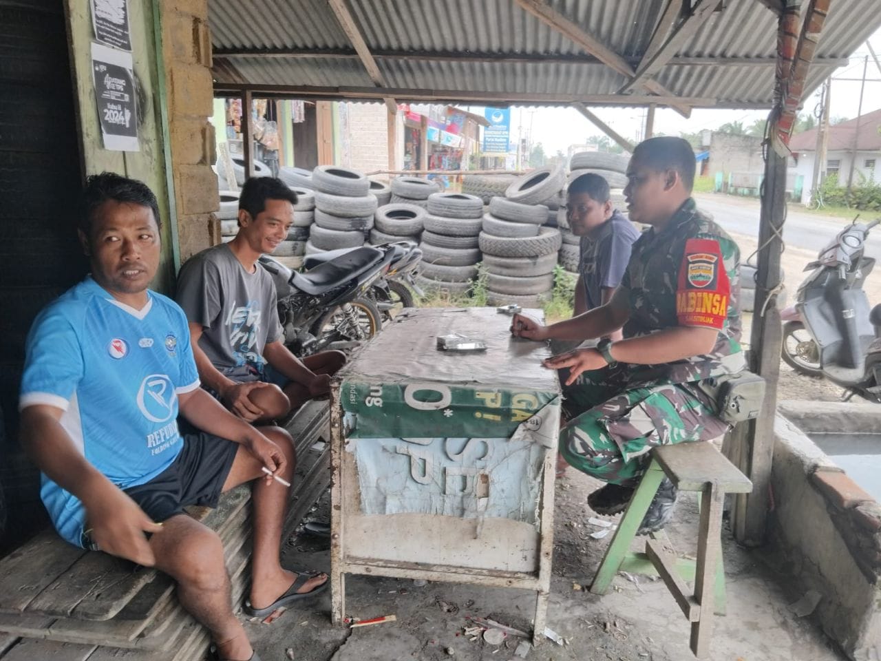Babinsa menyampaikan kepada warga beberapa hal terkait karhutla, umkm, keamanan Desa dan kenakalan remaja.Komsos ini juga untuk membina sinergitas dalam pelaksanaan tugas yang di emban para babinsa.