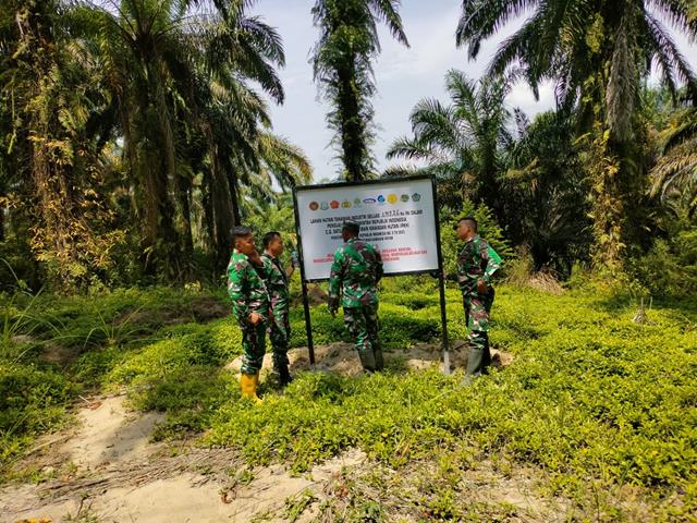 Asahan | Koramil 14/BPM Kodim 0208/ Asahan yang tergabung dalam personil Satgas penertiban kawasan hutan dipimpin pelda Junaedi bersama 4 orang Babinsa melaksanakan pengecekan plang lahan kawasan hutan tanam industri (HTI) PKH wilayah Dusun X desa Tomuan Holbung Ke. Bandar Pasir Mandoge Kab. Asahan (Kamis, 3 Juni 2025)