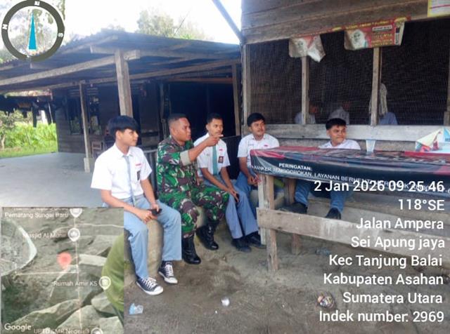 Dalam kegiatan belajar mengajar dan mari bersama kita sukseskan program pemerintah, dalam kesempatan ini seperti yang dilakukan oleh Personel Bintara Pembina Desa (Babinsa) Koramil 08/Pulau Buaya jajaran Kodim 0208/Asahan Kopda Fadli Siagian turun kewilayah binaan untuk melaksanakan kegiatan Komunikasi Sosial (Komsos) bersama dengan Siswa-siswi SMA, kegiatan Komsos dengan Siswa dan siswi SMA Muhamadiyah bersama dengan Pelajar, Wanwil dengan anak sekolah SMA Negeri 1 Tanjung Balai, Babinsa memberikan wawasan kebangsaan kepada anak-anak sekolah dan menumbuhkan rasa cinta akan arti Perjuangan agar mereka dapat memahami akan nilai-nilai Pancasila, dan Undang-undang dasar 1945, dan memotivasi agar lebih giat lagi belajar demi mencapai impian, dan cita-cita, mereka, dan mengerti akan perjuangan orang tua dalam mencari nafkah untuk menyekolahkan mereka, bersama dengan Siswa Rudi, Siswa Dika, Siswa Yudhi dan Siswa Jaka, kegiatan tersebut yang dilaksanakan bertempat di Jalan Ampera Sei Apung Jaya Kecamatan Tanjung Balai Kabupaten Asahan, Kamis (08/01/2026).