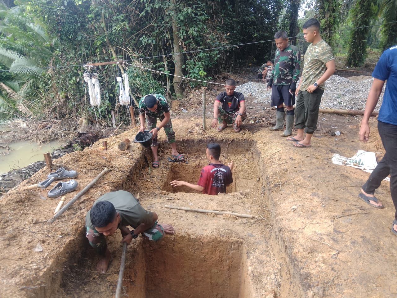 Dalam pekerjaan tersebut pihak dari TNI dan masyarakat juga membantu dalam proses pekerjaan itu diantaranya ada lima dan beberapa orang masyarakat” ujarnya.