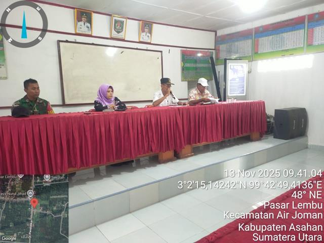 Asahan | Dalam rangka guna memberikan rasa aman dan nyaman kepada warganya pada pelaksanaan pembagian beberapa bantuan social di lakukan oleh Babinsa, dalam kesempatan ini salah satunya yang dilakukan oleh Personel Bintara Pembina Desa (Babinsa) Koramil 07/Air Joman jajaran Kodim 0208/Asahan Kopda Hambi Jaya turun kewilayah binaan untuk turut serta melaksanakan kegiatan menghadiri undangan dalam rangka untuk Pembagian BLT DD, dalam rangka Program BLT DD (Bantuan Langsung Tunai Dana Desa) Di Pasar Lembu pada tahun 2025 tahap 3 dan 4 dengan jumlah penerima 18 KK sebesar Rp.1.800.000 per KK terhitung mulai bulan Juli 2025 sampai dengan Desember 2025, bersama denganBapak Kasmiyadi (Kades Pasar Lembu), Bapak Usman (Bendahara Pasar Lembu), Ibu Fitri Rahayu (Staf PMK Kecamatan Air Joman), Bapak Munir (Ketua LPM Desa Pasar Lembu), Bapak Khoir (Ketua BPD Desa Pasar Lembu) dan Masyarakat yang Menerima BLT DD, kegiatan tersebut yang dilaksanakan bertempat di Aula Kantor Desa Pasar Lembu Kecamatan Air Joman Kabupaten Asahan, Kamis (13/11/2025).