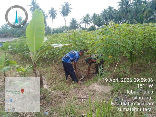 Setiap kali manusia berusaha mengubah salah satu atau seluruh faktor lingkungan alami, seperti pembukaan hutan, pengolahan tanah, pengairan dan sebagainya, maka selalu akan berhadapan dengan masalah baru karena tumbuhnya tumbuhan yang tidak diinginkan yang merupakan salah satu akibat dari perubahan tersebut, dalam kesempatan ini seperti yang dilakukan oleh Personel Bintara Pembina Desa (Babinsa) Koramil 07/Air Joman jajaran Kodim 0208/Asahan Kopka  Rudi turun kewilayah binaan untuk melaksanakan kegiatan Pendampingan sekaligus membantu Petani pemeliharaan dan membersihkan gulma pada Kebun Singkong, dengan melaksanakan pendataan luas lahan tanaman ubi kayu dan pendampingan petani ubi kayu bersama dengan Bapak Sutresno (Pemilik lahan), kegiatan tersebut yang dilaksanakan berlokasi di Dusun 8 Desa Lubuk Palas Kecamatan Silau Laut Kabupaten Asahan, Minggu (19/04/2026).