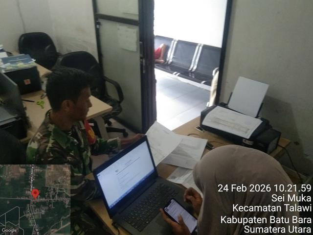 Dalam rangka untuk menjalin Komunikasi yang baik antara Babinsa dengan Masyarakat serta untuk mempererat Tali Silaturahmi dengan Aparatur Desa, kegiatan tersebut guna meng update data Keluarga Penerima Manfaat (KPM) atau yang berhak menerima Bantuan, sehingga bantuan yang diberikan oleh pemerintah dapat tersalurkan sesuai dan tepat sasaran, dalam kesempatan ini seperti yang dilakukan oleh Personel Bintara Pembina Desa (Babinsa) Koramil 04/Talawi jajaran Kodim 0208/Asahan Sertu Gunardi turun kewilayah binaan untuk melaksanakan kegiatan pendataan kepada warga masyarakat yang kurang mampu yang berhak mendapatkan bantuan, dalam rangka untuk menciptakan dan meningkatkan kerja sama yang baik serta menjalin hubungan antara TNI dengan aparatur Desa serta untuk menciptakan kemanunggal TNI dengan Rakyat, dengan melaksanakan pendataan bantuan sosial utk masyarakat yang berhak menerima, bersama dengan Ibu Sri (Kaur Perencanaan) dan Ibu ayu (Kaur kesra), kegiatan tersebut yang dilaksanakan bertempat di Kantor Desa Sei Muka Kecamatan Datuk Tanah Datar Kabupaten Batu Bara, Selasa (24/06/2026).
