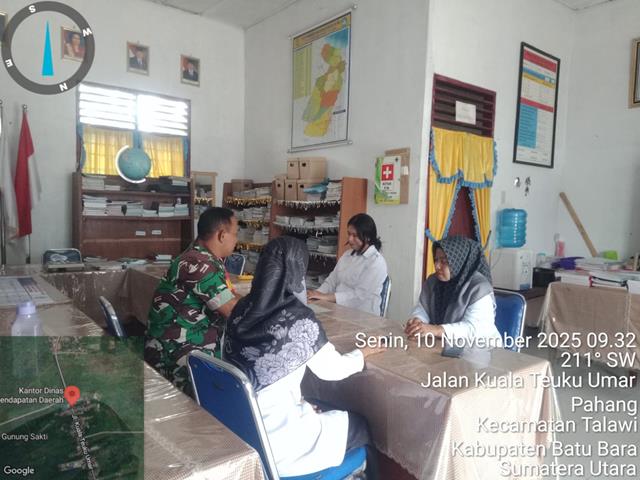 Batu Bara | Dengan melaksanakan kegiatan Komunikasi Sosial (Komsos) bersama dengan guru guru agar menjelaskan kembali tentang pentingya kebersihan, ke indahan dan kerapian sekolah agar anak murid dapat memahami dan dapat terhindar dari penyakit, dalam kesempatan ini seperti yang dilakukan oleh Personel Bintara Pembina Desa (Babinsa) Koramil 04/Talawi jajaran Kodim 0208/Asahan Serma RK Panjaitan turun kewilayah binaan untuk melaksanakan kegiatan Silaturahmi dengan Guru, Komsos dengan Guru tenaga Pendidik di SD Negeri 13 di desa binaan, dalam rangka untuk memelihara dan menjalin hubungan yang baik Antara Babinsa Guru tenaga pendidik agar mengetahui peningkatan program pemerintah yg ada disekolah tentang proses belajar dan mengajar di wilayah desa binaan, Bersama dengan Ibu Hayati S.Ag (Kepsek), Ibu Juliani br.Parhusip SP.d dan Ibu Masriani SP.d, kegiatan tersebut yang dilaksanakan bertempat di Desa Pahang Dusun 2 Kecamatan Talawi Kabupaten Batu Bara, Senin (10/11/2025).