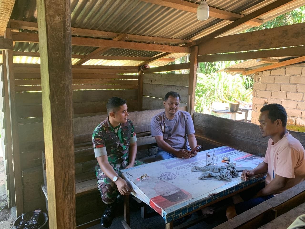 Babinsa Koramil 08/KM Kodim 0302/Inhu Pratu Sahat melaksanakan kegiatan Komunikasi sosial bersama warga binaan Di Desa Lubuk Terentang Kecamatan Gunung Toar kabupaten kuantan singingi. Selasa ( 14/04/2026).