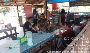 Teluk Kuantan – Untuk meningkatkan kerjasama yang baik dengan aparatur desa di wilayah binaan Babinsa Koramil 02/Kuantan Tengah Serma Teni Maldes melaksanakan Komsos bersama Perangkat desa bertempat di desa Geringging Jaya Kec. Sentajo Raya Kab. Kuansing. Senin (24/11/2025).