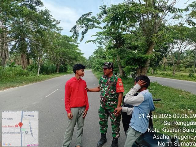 Asahan | Keberadaan TNI AD ternyata makin dirasakan dan kecintaan terhadap TNI semakin kuat serta di dambakan oleh Masyarakat baik sebagai pelindung maupun pengayom. Hal ini terbukti semakin banyak pemuda yang datang untuk mencari informasi tentang pendaftaran sebagai Prajurit TNI ke Makoramil, dalam kesempatan ini terlihat seperti yang dilakukan oleh Personel Bintara Pembina Desa (Babinsa) Koramil 06/Kisaran jajaran Kodim 0208/Asahan Serda Irsan Siregar turun kewilayah untuk melaksanaka kegiatan Komunikasi Sosial (Komsos) bersama dengan para Muda Mudi, kegiatan yang dilakukan babinsa yaitu memberi nasehat kepada pemuda untuk menuntut ilmu, baik ilmu agama maupun umum dan tidak menyia-nyiakan waktu yang berharga manfaat kan hari libur sekolah dengan baik tidak bergabung dengan geng motor agar terhindar dari potensi kejahatan dan kekerasan, bersama dengan Rudi (Pelajar) dan Wagito (Pelajar), kegiatan tersebut yang dilaksanakan bertempat di Kelurahan Bunut Barat Kecamatan Kota Kisaran Barat Kabupaten Asahan, Minggu (31/08/2025).