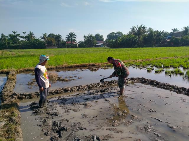 Personel Koramil 01/MD Kodim 0208/Asahan Bantu Petani Siapkan Lahan Pembibitan Padi