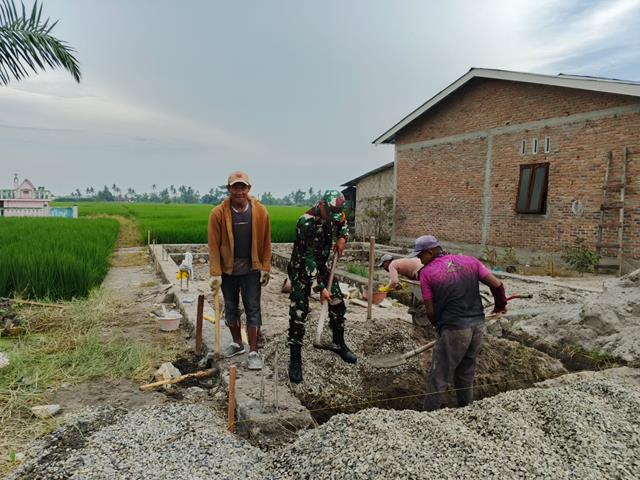 Babinsa mengajak warga agar selalu mengedepankan faktor keamanan saat bekerja serta senantiasa tetap menjalin hubungan silaturahmi dengan baik, Bhakti TNI membantu pembangunan pondasi rumah milik warga binaan ini bertujuan untuk mempererat ikatan kebersamaan dan keakraban antara Babinsa dan warga binaan, Gotong royong bersama masyarakat membantu pembangunan rumah warga binaan, Karya Bhakti bersama masyarakat Desa Binaan, kegiatan tersebut sebagai bukti wujud kepedulian sosial terhadap warga, dalam membantu membangun rumah salah satu Warga desa binaan, pada kesempatan tersebut Babinsa Serda Rasul Tumangger menyampaikan dengan ikut sertanya Babinsa, sehingga Masyarakat bersemangat untuk membantu dalam melakukan Kegiatan Karya Bhakti tersebut karena Babinsa diharapkan bisa menjadi Motivator dalam segala hal kegiatan di masyarakat nya, juga dapat memberikan contoh kepada warga di desa.