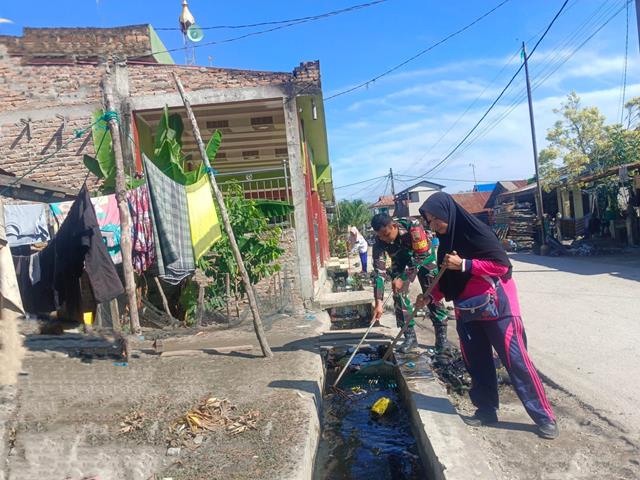 Batu Bara | Dalam rangka agar terjalinnya tali silaturahmi antara Babinsa dengan warga masyarakat Desa binaan, dalam kesempatan ini seperti yang dilakukan oleh Personel Bintara Pembina Desa (Babinsa) Koramil 01/Medang Deras jajaran Kodim 0208/Asahan Serma Edi Kurniawan turun kewilayah binaan untuk melaksanakan kegiatan Humanis bersama dengan warga masyarakat, turun kewilayah binaan untuk mlaksanakan kegiatan Gotong royong bersa masyarakat untuk menjalin kebersamaan yang Baik, dengan melaksanakan gotong royong bersama warga membersihkan parit dari tumpukan sampah plastik dan mengangkat benda” yg menyumbat saluran air agar disaat musim penghujan tiba tidak menyebabkan banjir kegiatan tersebut sebagai bentuk kepedulian Babinsa, bersama dengan Ibu Sri Wahyuni dan Ibu Sulasmi, kegiatan tersebut yang dilaksanakan bertempat di Kelurahan Pangkalan Dodek Kecamatan Medang Deras Kabupaten Batu Bara, Selasa (23/12/2025).