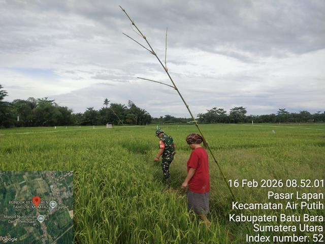Sebagai wujud kepedulian TNI dengan Rakyat khususnya Aparat Komando Kewilayahan (Apkowil) demi mendukung Pemerintah khususnya di Bidang Swasembada Pangan dengan semanggatnya para Babinsa terjun langsung kesawah membantu para Petani disawahnya, dalam kesempatan ini seperti yang dilakukan oleh Personel Bintara Pembina Desa (Babinsa) Koramil 02/Air Putih jajaran Kodim 0208/Asahan Sertu A Razak turun kewilayah binaan untuk melaksanakan kegiatan hanpangan, kegiatan pendampingan hanpangan pembersihan pencabutan rumput yg menjalar diseputaran sawah, dengan melaksanakan kegiatan ketahanan Pangan membantu membersihkan hama rumput di lahan milik Ibu Susilawati agar padi dapat tumbuh subur dan sehat untuk menghasilkan panen yang di inginkan, bersama dengan Ibu Susilawati, kegiatan tersebut yang dilaksanakan bertempat di Dusun Banjar Desa Perkotaan Kecamatan Air Putih Kabupaten Batu Bara, Senin (16/02/2026).