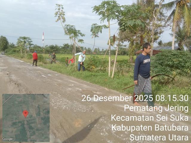 Kegiatan gotong-royong ini melibatkan warga masyarakat setempat bersama Babinsa dengan tujuan untuk mewujudkan hidup sehat, selain itu juga untuk menumbuhkan kebersamaan diantara seluruh lapisan masyarakat, pada kesempatan tersebut seperti halnya yang dilakukan oleh Personel Bintara Pembina Desa (Babinsa) Koramil 02/Air Putih jajaran Kodim 0208/Asahan Sertu Ahmad turun kewilayah binaan untuk melaksanakan kegiatan Gotong Royong pembersihan saluran Irigasi, gotong royong membantu membersikan saluran irigasi parit bersama warga desa binaan dan poktani, kegiatan Gotong Royong membersihkan Parit Irigasi guna memperlancar arus air yang masuk kepersawahan masyarakat, bersama dengan Bapak Arlan (Kadus), Bapak Imran (Warga) dan Warga Desa Pematang Jering, kegiatan tersebut yang dilaksanakan bertempat di Dusun 7 Desa Pematang Jering Kecamatan Sei Suka Kabupaten Batu Bara, Jumat (26/12/2025).