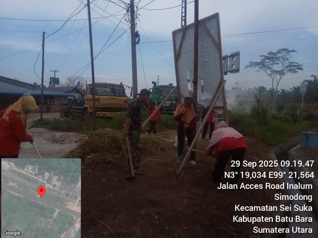 Batu Bara  |  Kegiatan ini bertujuan untuk menumbuhkan semangat gotong-royong dan kepedulian masyarakat terhadap kebersihan lingkungan sekitarnya. Kondisi sekeliling kiri kanan jalan yang ditumbuhi dengan rumput liar dan banyaknya sampah membuat pemandangan sekitar menjadi kurang enak dipandang dan terkesan tidak terpelihara kebersihannya, dalam kesempatan ini kali ini seperti yang dilakukan oleh Personel Bintara Pembina Desa (Babinsa) Koramil 02/Air Putih jajaran Kodim 0208/Asahan Sertu David Purba turun kewilayah binaan untuk melaksanakan kegiatan pendampingan gotong  royong dengan melaksanakan kegiatan bersama warga membersihkan akses kanan kiri jalan dan parit, kegiatan Bakti TNI yakni bergotong royong bersama warga, kegiatan gotong royong membersihkan seputaran gapura desa agar bersih dan indah, bersama dengan Sekdes Bapak Surya, Para Kadus Desa Brohol dan Ibu-ibu PKK Desa Brohol, kegiatan tersebut yang dilaksanakan bertempat di Dusun 1 Desa Brohol Kecamatan Sei Suka Kabupaten Batu Bara, Senin (29/09/2025).