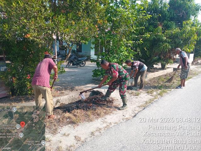 Dalam kesempatan tersebut seperti halnya yang dilakukan oleh Personel Bintara Pembina Desa (Babinsa) Koramil 02/Air Putih jajaran Kodim 0208/Asahan Sertu A Tumanggor turun kewilayah binaan untuk melaskanakan kegiatan Bakti TNI Gotong-royong dengan warga masyarakat Desa, dengan melaksanakan Gotong royong bersama warga binaan, Gotong royong bersama warga desa Limau Sundai membersihkan parit untuk menghindari wabah penyakit dan sarang nyamuk, Gotong royong bersama masyarakat Pembersihan paritgot yang tersumbat Babinsa mengajak masyarakat yang di depan rumahnya terdapat sampah agar tidak membuang sampah kedalam parit demi kenyamanan bersama supaya parit bersih dan mengalir lancar, dengan melaksanakan kegiatan Bakti TNI dengan warga, bersama dengan Bapak R Sitorus (Tomas), Bapak T Simbolon (Kadus) dan Bapak B Sitinjak (Warga), kegiatan tersebut yang dilaksanakan bertempat di Desa Pematang Panjang Kecamatan Air Putih Kabupaten Batu Bara, Jumat (20/03/2026).