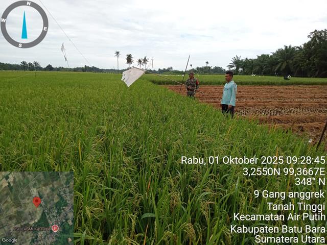 Kegiatan ini dilaksanakan untuk memantau hasil usaha petani yang sudah bekerja dengan maksimal. Selain itu juga untuk memantau kerusakan yang diakibatkan oleh hama burung yang terus menerus memakan butir padi disawah, dalam kesempatan tersebut seperti halnya yang dilakukan oleh Personel Bintara Pembina Desa (Babinsa) Koramil 02/Air Putih jajaran Kodim 0208/Asahan Pelda Sunardy turun kewilayah desa binaan untuk melaksanakan kegiatan Han pangan membantu petani, kegiatan membantu petani mengusir hama burung yang menggangu memakan padi disawah Bapak Tumiran seluas 5 rante, kegiatan tersebut yang dilaksanakan bertempat di Dusun 10 Desa Tanah Tinggi Kecamatan Air Putih Kabupaten Batu Bara, Rabu (01/10/2025).