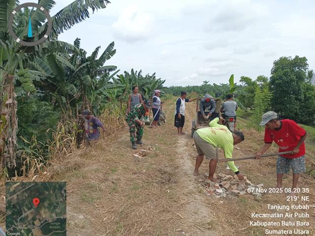 Batu Bara | Dalam rangka agar terjalinnya tali silaturahmi antara Babinsa dan masyarakat binaan, bersama masyarakat melaksanakan karya bhakti dengan gotong royong membersihkan kiri kanan jalan perkampungan warga, dalam kesempatan ini seperti yang dilakukan oleh Personel Bintara Pembina Desa (Babinsa) Koramil 02/Air Putih jajaran Kodim 0208/Asahan Sertu Sumardi turun kewilayah binaan untuk melaksanak gotong royong bersama dengan masyarakat, pembersihan kiri kanan Jalan, Gotong royong bersama masyarakat untuk membersihkan Kanan Kiri bahu jalan, giat gotong royong bersama dengan warga masyarakat, kegiatan gotong royong bersama warga masyarakat binaan membantu membersihkan Sampah dan pasir di sepanjang paret, Bersama dengan Bapak S Sembiring (Kadus Anggrek), Bapak Samsul (Ketua LPM) dan warga Dusun Anggrek, kegiatan tersebut yang dilaksanakan bertempat di Dusun Anggrek Desa Tanjung Kubah Kecamatan Air Putih Kabupaten Batu Bara, Jumat (07/11/2025).