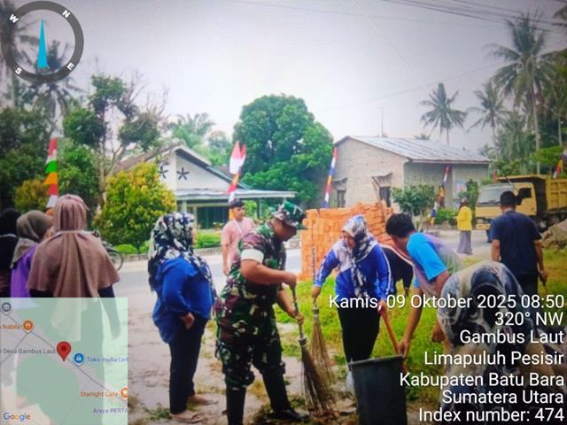Batu Bara | Kegiatan Gotong-royong bersama Lurah, Kepling dan warga membersihkan lingkungan, rumput dan sampah di kanan kiri jalan utama, untuk menciptakan dan menjaga lingkungan agar tetap bersih, nyaman dan asri, sehingga terciptanya lingkungan yang bersih dan sehat, tujuan dari Gotong-royong pembersihan parit tiada lain untuk memperlancar aliran air agar tidak terjadi banjir pada saat hujan tiba sekaligus membersihkan lingkungan termasuk dengan kiri kanan jalan diwilayah binaan, dalam kesempatan tersebut seperti hal yang dilakukan oleh Personel Bintara Pembina Desa (Babinsa) Koramil 03/Lima Puluh jajaran Kodim 0208/Asahan Sertu Sutikno turun kewilayah untuk melaksanakan kegiatan Gotong Royong dalam rangka membersihkan lingkungan kiri kanan jalan dan parit, kegiatan gotong royong bersama Kepala Desa Gambus Laut dan warga Gambus Laut membersihkan lingkungan khususnya tempat pembuangan sampah, Kegiatan gotong royong ini bertujuan untuk memelihara kebersihan agar setiap warga merasa nyaman dan terbebas dari penyakit seperti Demam Berdarah di karenakan lingkungan yang kurang sehat dan kotor, selain itu gotong royong juga bertujuan untuk saling menjaga silaturahmi antar sesama warga, tetap menjaga budaya dan kekompakan, dalam kesempatan ini Babinsa mengajak dan menghimbau agar kegiatan gotong royong tetap di pertahankan, bersama dengan Kades Gambus Laut (Bapak Zaharuddin), Kadus dan warga Gambus Laut, kegiatan tersebut yang dilaksanakan bertempat di Desa Gambus Laut Kecamatan Lima Puluh Pesisir Kabupaten Batu Bara, Kamis (09/10/2025).