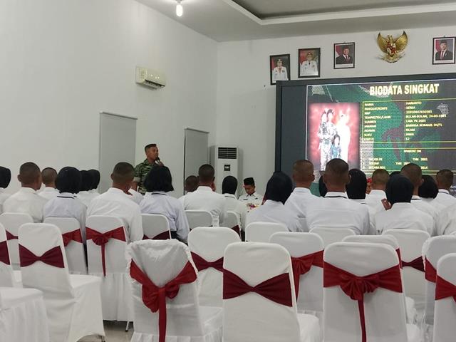 Personel Koramil 04/Talawi Kodim 0208/Asahan Berikan Pembinaan Mental Pasukan Pengibar Bendera Kabupaten Batu Bara