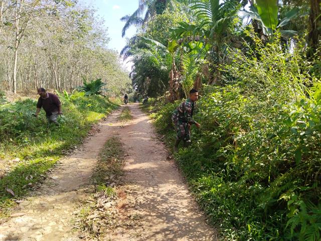 Dengan memelihara dan menjalin hubungan baik Antara Babinsa dan masyarakat untuk meningkatkan rasa kepedulian terhadap masyarakat pada umumnya. Dalam rangka menjaga kebersihan dan kelancaran akses fasilitas umum, Babinsa melaksanakan kegiatan gotong royong bersama masyarakat desa binaan dengan membersihkan jalan yang menuju Tempat Pemakaman Umum (TPU). Kegiatan difokuskan pada pembersihan rumput liar, semak, dan sampah yang menutupi sisi jalan sehingga menghambat akses masyarakat. Babinsa terlibat langsung bersama warga sebagai bentuk kepedulian terhadap lingkungan dan pelayanan sosial. Babinsa menegaskan bahwa kebersamaan dalam kegiatan gotong royong merupakan salah satu upaya untuk menumbuhkan rasa tanggung jawab bersama terhadap fasilitas umum. Selain itu, kegiatan ini juga menjadi sarana mempererat hubungan antara Babinsa dan masyarakat. Selama kegiatan berlangsung, situasi terpantau aman dan kondusif. Dengan adanya pembersihan ini, diharapkan akses jalan menuju TPU menjadi lebih nyaman dan layak digunakan oleh masyarakat.