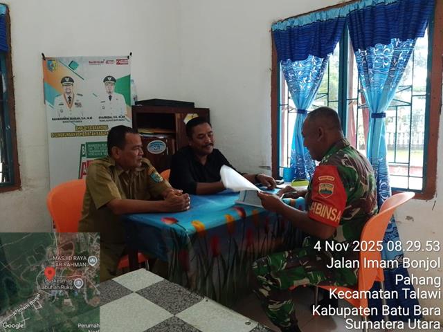 Batu Bara  |  Dalam rangka untuk menjalin Komunikasi yang baik antara Babinsa dengan Masyarakat serta untuk mempererat Tali Silaturahmi dengan Aparatur Desa, kegiatan tersebut guna meng update data Keluarga Penerima Manfaat (KPM) atau yang berhak menerima Bantuan, sehingga bantuan yang diberikan oleh pemerintah dapat tersalurkan sesuai dan tepat sasaran, dalam kesempatan ini seperti yang dilakukan oleh Personel Bintara Pembina Desa (Babinsa) Koramil 04/Talawi jajaran Kodim 0208/Asahan Sertu N Prayetno turun kewilayah binaan untuk melaksanakan kegiatan pendataan kepada warga masyarakat yang kurang mampu yang berhak mendapatkan bantuan, dalam rangka untuk menciptakan dan meningkatkan kerja sama yang baik serta menjalin hubungan antara TNI dengan aparatur Desa serta untuk menciptakan kemanunggal TNI dengan Rakyat, Pendataan pemutahiran data keluarga penerima manfaat (KPM) PKH untuk masyarakat yang berhak menerima bantuan, bersama dengan Bapak Anwar (Kepling II) dan Bapak Ilyas (Masyarakat), kegiatan tersebut yang dilaksanakan bertempat di Kantor Kelurahan Labuhan Ruku Jalan Imam Bonjol Lingkungan l Kecamatan Talawi Kabupaten Batu Bara, Selasa (04/11/2025).