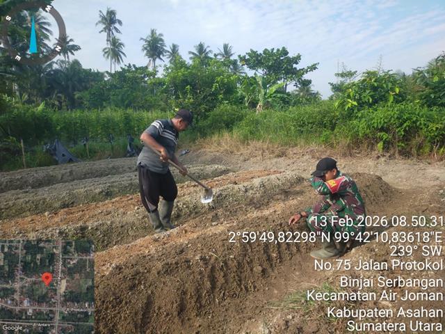 Selama kegiatan berlangsung, suasana kebersamaan dan gotong royong tampak terjalin dengan baik. Diharapkan melalui kerja sama ini, proses penanaman cabai dapat berjalan lancar dan memberikan hasil panen yang maksimal bagi para petani di wilayah binaan, dalam kesempatan ini seperti yang dilakukan oleh Personel Bintara Pembina Desa (Babinsa) Koramil 07/Air Joman jajaran Kodim 0208/Asahan Kopda Hambi Jaya turun kewilayah binaan untuk melaksanakan kegiatan Wanwil yaitu membantu petani membersihkan lahan yg akan ditanami cabai seluas 3 rante milik Bapak Sinaga, kegiatan ini bertujuan membantu Warga membersikan rumput yang ada pada lahan yg akan di tanami cabai tersebut. supaya hasil produksi panennya nanti baik, Kegiatan ini bertujuan agar terjalin hubungan yang baik dimana Babinsa selalu berada ditengah tengah Masyarakat, kegiatan tersebut yang dilaksanakan bertempat di Kelurahan Binjai Serbangan Lingkungan VI Kecamatan Air Joman Kabupaten Asahan, Jumat (13/02/2026).