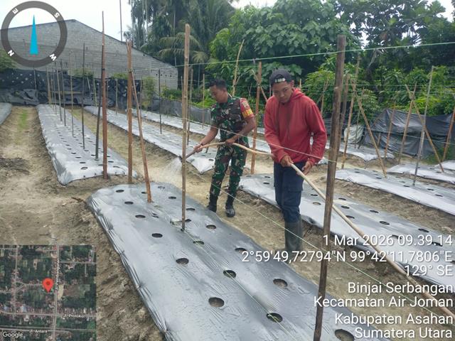 Kegiatan berlangsung dengan penuh kebersamaan dan semangat gotong royong. Diharapkan sinergi antara Babinsa dan petani terus terjalin dengan baik demi mendukung kemajuan sektor pertanian di wilayah binaan, dalam kesempatan ini seperti yang dilakukan oleh Personel Bintara Pembina Desa (Babinsa) Koramil 07/Air Joman jajaran Kodim 0208/Asahan Kopda Hambi Jaya turun kewilayah binaan untuk melaksanakan kegiatan Puanter di lahan milik Bapak Sinaga, kegiatan Babinsa kali ini memantau sekaligus mendata lahan yang akan di jadikan lahan yang di tanami pohon Mentimun seluas 4 rante, kegiatan Babinsa tersebut sudah menjadi tugas pokok sebagai seorang Babinsa sekaligus menjalin tali silaturrahmi antara Babinsa dengan warga desa binaan, bersama dengan Bapak Sinaga (pemilik lahan), kegiatan tersebut yang dilaksanakan bertempat di Lingkungan VI Kelurahan Binjai Serbangan Kecamatan Air Joman Kabupaten Asahan, Minggu (01/03/2026).