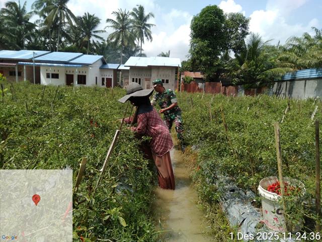 Dalam kesempatan ini seperti yang dilakukan oleh Personel Bintara Pembina Desa (Babinsa) Koramil 07/Air Joman jajaran Kodim 0208/Asahan Pelda Ifan Desmar turun kewilayah binaan untuk melaksanakan kegiatan Komunikasi Sosial (Komsos) bersama dengan warga masyarakat binaan di areal pertanian warga yang sedang menanam cabai memberi semangat dan motivasi dengan masyarakat dengan laksanakan kegiatan pendampingan dalam perawatan tanaman cabe, pendampingan ketahanan pangan (Hanpang) jenis tanaman Cabai Hijau untuk membantu masyarakat memanen hasil kebun yang akan di jual ke pekan.tujuan supaya tercipta kerjasama yang baik antara Babinsa dengan masyarakat dan mendukung tugas pokok TNI, Bersama Rakyat TNI kuat dan Babinsa selalu dihati Rakyat, bersama dengan Ibu Ida dan Ibu Jum, kegiatan tersebut yang dilaksanakan bertempat di Dusun 2 Desa Punggulan Kecamatan Air Joman Kabupaten Asahan, Senin (01/12/2025).