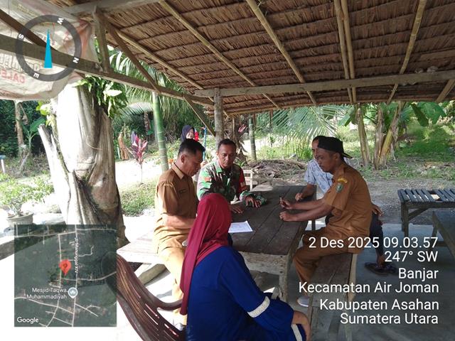 Dalam rangka untuk menciptakan dan meningkatkan kerja sama yang baik serta menjalin hubungan antara TNI dan aparatur desa serta untuk menciptakan kemanunggal TNI dengan Rakyat, dalam kesempatan tersebut seperti hal yang dilakukan oleh Personel Bintara Pembina Desa (Babinsa) Koramil 07/Air Joman jajaran Kodim 0208/Asahan Kopka Rudi turun kewilayah binaan untuk melaksanakan kegiatan Komunikasi Sosial (Komsos) bersama dengan perangkat desa, kegiatan komsos dengan aparatur desa untuk mempererat hubungan antara perangkat desa, Komsos dengan perangkat desa dan masyarakat tersebut membicarakan masalah gotong royong saluran air disusun 2 dan dsn 3 desa lubuk Palas kegiatan tersebut akan dilaksanakan karena intensitas hujan tinggi guna mencegah terjadinya bnjir didesa lubuk Palas karena dengan bersih nya saluran air maka desa lubuk Palas terbebas dari bnjir sehingga tidak menghambat kegiatan masyarakat sehari2, bersama dengan Bapak Hakim (Kadus 6), Bapak Guntur (Kadus 4), Bapak Murad (Kadus 11), Bapak Anto (Masyarakat) dan Bapak Pariyah (Pemilik Warung), kegiatan tersebut yang dilaksanakan bertempat di Desa Lubuk Palas Kecamatan Silau Laut Kabupaten Asahan, Selasa (02/12/2025).