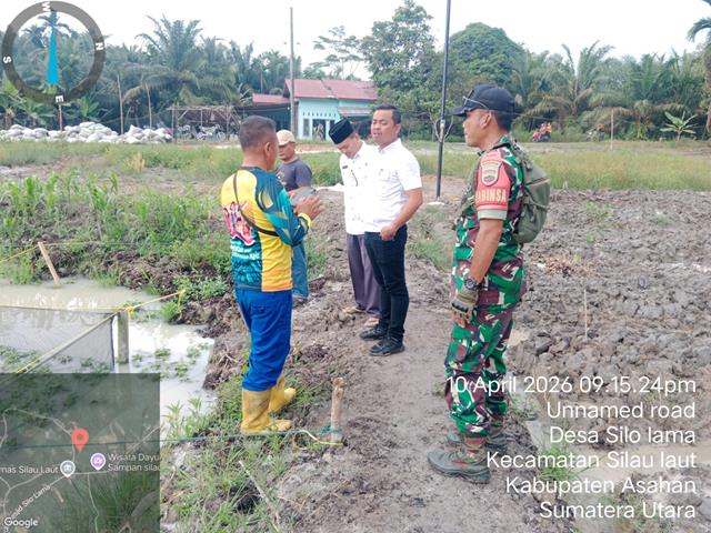 Dalam kegiatan tersebut, Babinsa bersama Camat juga berdiskusi dengan perangkat desa mengenai pengelolaan kolam ikan agar dapat berjalan optimal dan berkelanjutan sesuai kebutuhan masyarakat setempat, dalam kesempatan ini seperti yang dilakukan oleh Personel Bintara Pembina Desa (Babinsa) Koramil 07/Air Joman jajaran Kodim 0208/Asahan Sertu Ali Imron turun kewilayah binaan untuk melaksanakan kegiatan pendampingan Bapak Camat Silau laut, meninjau lahan Hanpang, Babinsa bersama Camat dan perangkat desa juga membahas upaya peningkatan pengelolaan kolam agar mampu memenuhi kebutuhan masyarakat secara berkelanjutan dan sesuai dengan potensi desa, bersama dengan Bapak Utomo (Camat Silau Laut), Bapak Siman (Kades Silo Lama), Sekcam Silau Laut dan Kadus V, kegiatan tersebut yang dilaksanakan bertempat di Desa Silo Lama Dusun V Desa Silo Lama Kecamatan Silau Laut Kabupaten Asahan, Jumat (10/04/2026).