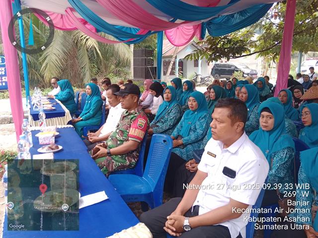 Dengan mendukung program pemerintah dalam menyediakan pangan yang sehat dan bergizi, kunjungan tersebut dalam rangka silaturahmi dan meningkatkan sinergitas antara TP PKK Kabupaten Asahan dengan masyarakat desa, dalam kesempatan ini seperti yang dilakukan oleh Personel Bintara Pembina Desa (Babinsa) Koramil 07/Air Joman jajaran Kodim 0208/Asahan Serda Dahrum turun kewilayah binaan untuk turut serta menghadiri acara kunjungan Tim Monitoring TP. PKK Provinsi Sumatera Utara dalam Rangka Lomba Aku Hatinya PKK, dalam kegiatan ini Tim Monitoring dari Provinsi Sumatera mengajak seluruh pihak untuk terus menjaga kebersamaan dalam memajukan desa dan Kabupaten Asahan, karena nilai gotong royong merupakan warisan luhur bangsa Indonesia, kegiatan tersebut yang dilaksanakan bertempat di Dusun 4 Desa Banjar Kecamatan Air Joman Kabupaten Asahan, Rabu (27/08/2025).