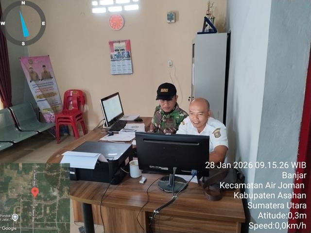 Kegiatan Puldata Ter berlangsung dengan lancar dan penuh kebersamaan. Perangkat desa menyambut baik kegiatan ini dan mendukung upaya Babinsa dalam memperkuat sinergi antara TNI dan pemerintah desa, dalam kesempatan tersebut seperti yang dilakukan oleh Personel Bintara Pembina Desa (Babinsa) Koramil 07/Air Joman jajaran Kodim 0208/Asahan Sertu Dahrum turun kewilayah binaan untuk melaksanakan kegiatan Pul Data Ter bersama Perangkat Desa, dengan melaksanakan Puanter yaitu pendataan Pul Data Ter bersama Perangkat Desa, kegiatan ini juga dapat memperat hubungan silaturahmi antara Babinsa dan masyarakat binaan, bersama dengan Bapak Samsul (Kasipem Banjar), kegiatan tersebut yang dilaksanakan bertempat di Kantor Balai Desa Banjar Dusun 2A Desa Banjar Kecamatan Air Joman Kabupaten Asahan, Rabu (28/01/2026).