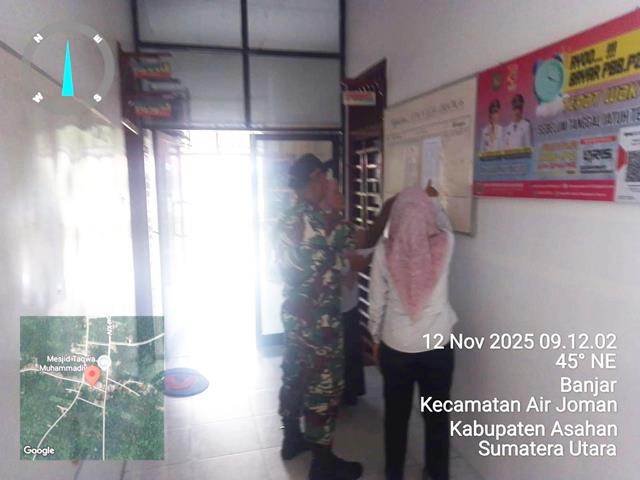 Asahan | Dalam rangka membicarakan tentang Pendataan Jumlah Penduduk yang baru pindah dan yang telah meninggal dunia untuk perbaharuan data, pada kesempatan tersebut Babinsa dapat mengetahui jumlah penduduk yang baru dan meninggal dunia di setiap Desa binaan, dalam kesempatan ini seperti yang dilakukan oleh Personel Bintara Pembina Desa (Babinsa) Koramil 07/Air Joman jajaran Kodim 0208/Asahan Kopka Rudi turun kewilayah binaan untuk melaksanakan kegiatan Pul Data Ter diwilayah di desa binaan, agar terjalin hubungan yang erat antara Babinsa dan perangkat desa, Puldatater mendata Geo, Demo dan Konsos masyarakat, pendataan tersebut dilaksanakan dalam rangka untuk melihat jumlah warga lansia dan warga masyarakat yg masih usia produktif dan mendata pelaku UMKM di desa lubuk Palas guna mengetahui jumlah nyata warga desa lubuk Palas dan perkembangan ekonomi didesa serta untuk melengkapi administrasi desa sekaligus Babinsa melaksanakan silaturahmi dengan perangkat desa lubuk Palas, bersama dengan Ibu Khairiyah (prangkat desa) dan Ibu Irawati (Kaur Desa), kegiatan tersebut yang dilaksanakan bertempat di Kantor Desa Lubuk Palas Dusun 3 Desa Lubuk Palas Kecamatan Silau Laut Kabupaten Asahan, Rabu (12/11/2025).