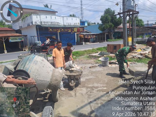 Asahan  |  Babinsa kerap turut serta dalam pembangunan mushola, bukan hanya sebagai aparat kewilayahan tetapi juga sebagai wujud kepedulian TNI terhadap sarana ibadah dan mempererat kemanunggalan TNI dengan rakyat. Partisipasi ini dilakukan melalui gotong royong, bantuan tenaga, material, serta pengawasan, yang bertujuan untuk meringankan beban masyarakat dan membangun kebersamaan, peran dan bentuk keterlibatan Babinsa tenaga dan Gotong royong, Babinsa ikut serta secara fisik membantu mengangkat material mengecor serta melakukan pekerjaan lain dalam proses pembangunan secara gotong royong, kegiatan ini sebagai wujud kepedulian dan dukungan, Babinsa juga dapat memberikan bantuan material untuk kelancaran pembangunan mushola.