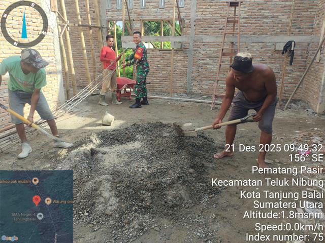 Dalam kesempatan ini seperti yang dilakukan oleh Personel Bintara Pembina Desa (Babinsa) Koramil 08/Pulau Buaya Jajaran Kodim 0208/Asahan Serma Prayogi turun kewilayah binaan untuk melaksanakan kegiatan Gotong royong bersama masyarakat dalam pembenahan membuat rumah warga desa binaan selaku mitra karib yang ada diwilayah binaan, Gotong-royong bersama masyarakat dalam pembuatan pondasi membangun rumah warga, kegiatan BAKTI TNI membantu warga desa binaan diseputaran wilayah mako Ramil yang sedang melaksanakan pengerjaan pembangunan rumah, guna menjalin terjaganya hubungan yang baik antara Personil Babinsa dengan warga, bersama dengan Bapak Soleh dan Bapak Rahmat, kegiatan tersebut yang dilaksanakan bertempat di Kelurahan Pematang Pasir Kecamatan Teluk Nibung Kota Tanjung Balai, Minggu (21/12/2025).