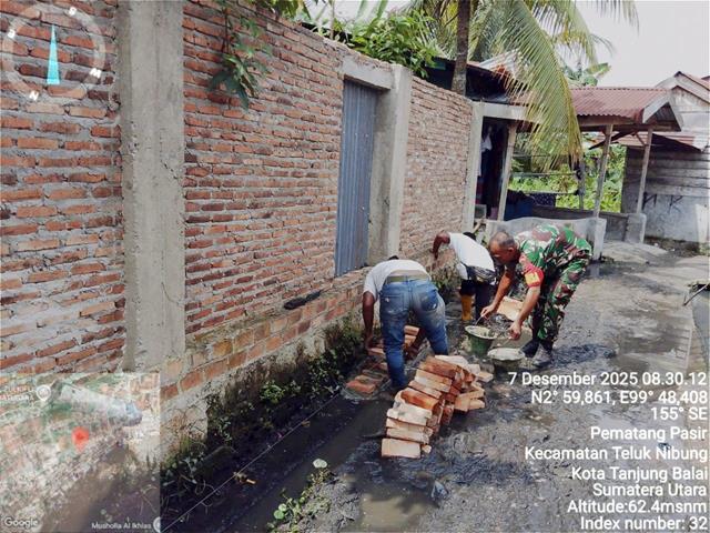 Tanjung Balai  |  Gotong royong memperbaiki parit aliran air tersebut untuk mengantisipasi adanya bahaya luapan air pada saat musim penghujan. Hal ini tak lain karena para Babinsa benar-benar tulus dan ikhlas dalam membina dan membantu masyarakat, selain itu juga karena kesadaran dalam diri mereka bahwa TNI berasal dari Rakyat dan untuk Rakyat, dalam kesempatan ini seperti yang dilakukan oleh Personel Bintara Pembina Desa (Babinsa) Koramil 08/Pulau Buaya jajaran Kodim 0208/Asahan Sertu Surya Bakti turun kewilayah binaan untuk melaksanakan kegiatan Bhakti TNI bersama masyarakat memperbaiki parit aliran air di Lingkungan V Kelurahan Pematang Pasir, dalam kegiatan ini Babinsa menghimbau masyarakat pentingnya kerja sama secara gotong royong serta sama-sama menjaga kebersihan lingkungan termasuk parit-parit aliran air agar selalu dibersihkan untuk mencegah banjir, bersama dengan Bapak Oyon, Bapak Sahlan, Bapak Sangkot dan Bapak Umar, kegiatan tersebut yang dilaksanakan bertempat di Lingkungan V Kelurahan Pematang Pasir Kecamatan Teluk Nibung Kota Tanjung Balai, Minggu (07/12/2025).