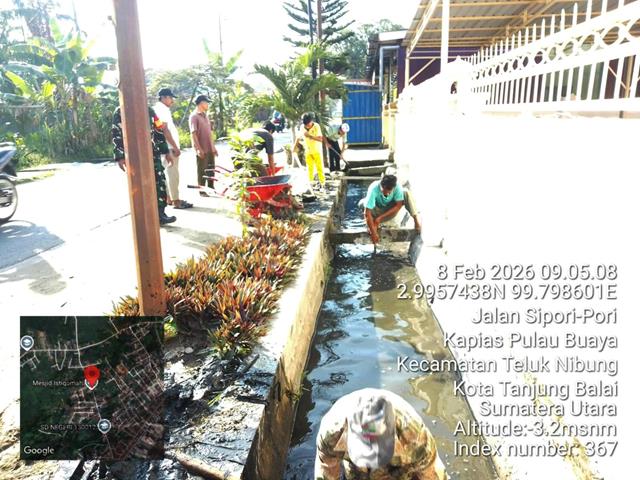 Dalam kesempatan tersebut seperti halnya yang dilakukan oleh Personel Bintara Pembina Desa (Babinsa) Koramil 08/Pulau Buaya jajaran Kodim 0208/Asahan Serka HM Pasaribu turun kewilayah binaan untuk melaskanakan kegiatan Bakti TNI Gotong-royong dengan warga masyarakat Desa, kegiatan Bakti membantu warga yang sedang melaksanakan Gotongroyong di Area mesjid Istiqomah, dalam rangka membersihkan tempat ibadah oleh jemaah masjid, Babinsa mengajak warga agar tetap menjalin hubungan silaturahmi dan kerjasama yang baik antar sesame, bersama dengan Bapak Ebeh, Bapak Martin, Bapak Hamid, Bapak Sahdan dan Bapak Nano, kegiatan gotong royong bersama warga binaan tersebut yang dilaksanakan bertempat di Jalan Siporipori Kelurahan Kapias Pulau Buaya Kecamatan Teluk Nibung Kota Tanjung Balai, Minggu (08/02/2026).