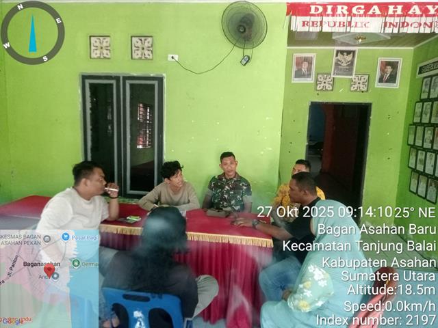 Asahan  |  Dengan mengingatkan agar selalu peduli dengan lingkungan dan keamanan wilayah agar terciptanya situasi yang kondusif, kegiatan Komunikasi Sosial yang dilakukan bersama tersebut dalam rangka memperkuat sinergitas dan koordinasi, terkait keamanan, ketertiban masyarakat, dalam kesempatan ini seperti yang dilakukan oleh Personel Bintara Pembina Desa (Babinsa) Koramil 12/Pulau Buaya jajaran Kodim 0208/Asahan Sertu Faisal Lubis turun kewilayah binaan untuk memberikan wawasan kebangsaan melalui Komunikasi Sosial (Komsos) bersama dengan warga masyarakat binaan, kegiatan komsos dengan Kades, Tokoh Pemuda dan Masyarakat sebagai sarana bersilaturahmi kepada warga supaya lebih dekat dan bisa menjalin kebersamaan,dengan tujuan untuk mempererat hubungan kekeluargaan antara Babinsa dengan masyarakat sehingga terciptanya hubungan yang harmonis, bersama dengan Bapak M Yusuf Arjuna (Kades), Bapak Sofian (Tokoh Pemuda), Ibu Siti (Kader Posyandu) dan Masyarakat, kegiatan terebut yang dilaksanakan bertempat di Balai Desa Bagan Asahan Baru Kecamatan Kota Tanjung Balai Kabupaten Asahan, Senin (27/10/2025).